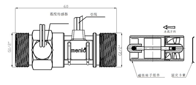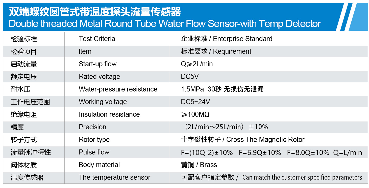 双端螺纹圆管式带温度探头流量传感器